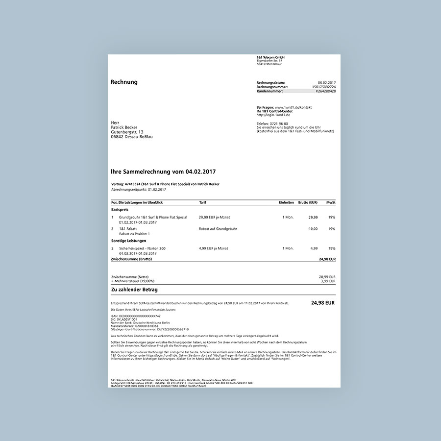 Like all our documents, the 1&1 Utility Bill is both high quality and up to date. With our custom service, you can add the details you wish to appear on your fake 1&1 Utility Bill. From custom transactions, to name, address, bank, branch and even starting and ending balances. You can purchase 1 statement or multiples from 3 months to 6, 12 months statements depending on your requirements. We provide you with a high quality printable PDF file, the same as usually comes direct from your online banking. For most people this is enough as they can print it themselves for those of you that need a copy by post this also available on request shipping times you can view our shipping information page.