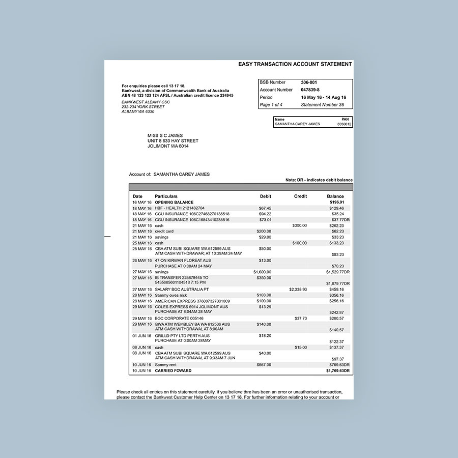 We also offer a fully editable PSD version of this fake Bankwest Bank Statement. This is for all you PhotoShop wizards out there! With our Photoshop Documents you can make as many edits as you wish, so once you buy it once you can keep this file and have unlimited uses for life.