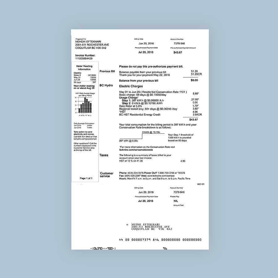 BC Hydro Utility Bill