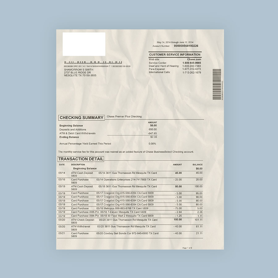 We also offer a fully editable PSD version of this fake Chase Bank Statement. This is for all you PhotoShop wizards out there! With our Photoshop Documents you can make as many edits as you wish, so once you buy it once you can keep this file and have unlimited uses for life.