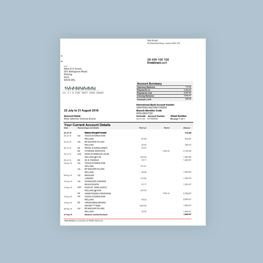 We also offer a fully editable PSD version of this fake First Direct Bank Statement. This is for all you PhotoShop wizards out there! With our Photoshop Documents you can make as many edits as you wish, so once you buy it once you can keep this file and have unlimited uses for life.