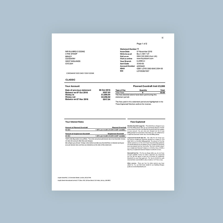 Lloyds Bank Statement