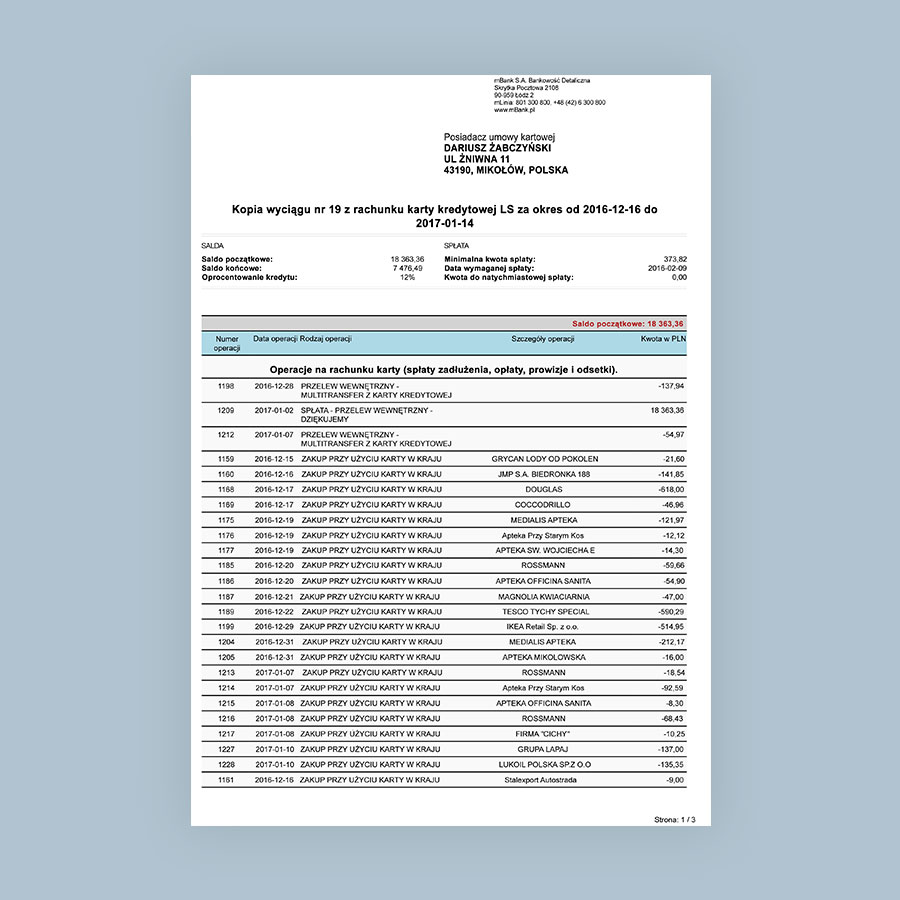 We also offer a fully editable PSD version of this fake MBANK Bank Statement. This is for all you PhotoShop wizards out there! With our Photoshop Documents you can make as many edits as you wish, so once you buy it once you can keep this file and have unlimited uses for life.