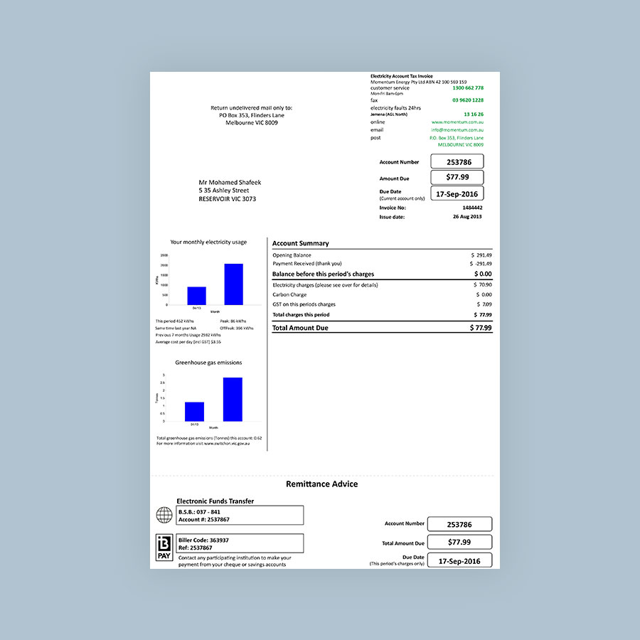 Our team are on hand to process your order as quickly as possible. All orders are guaranteed within 3-4 business days, but can usually be done a lot quicker. If you need your fake Momentum Utility Bill quickly, we have an express service available which will bring that turnaround down to just 24-48 hours.