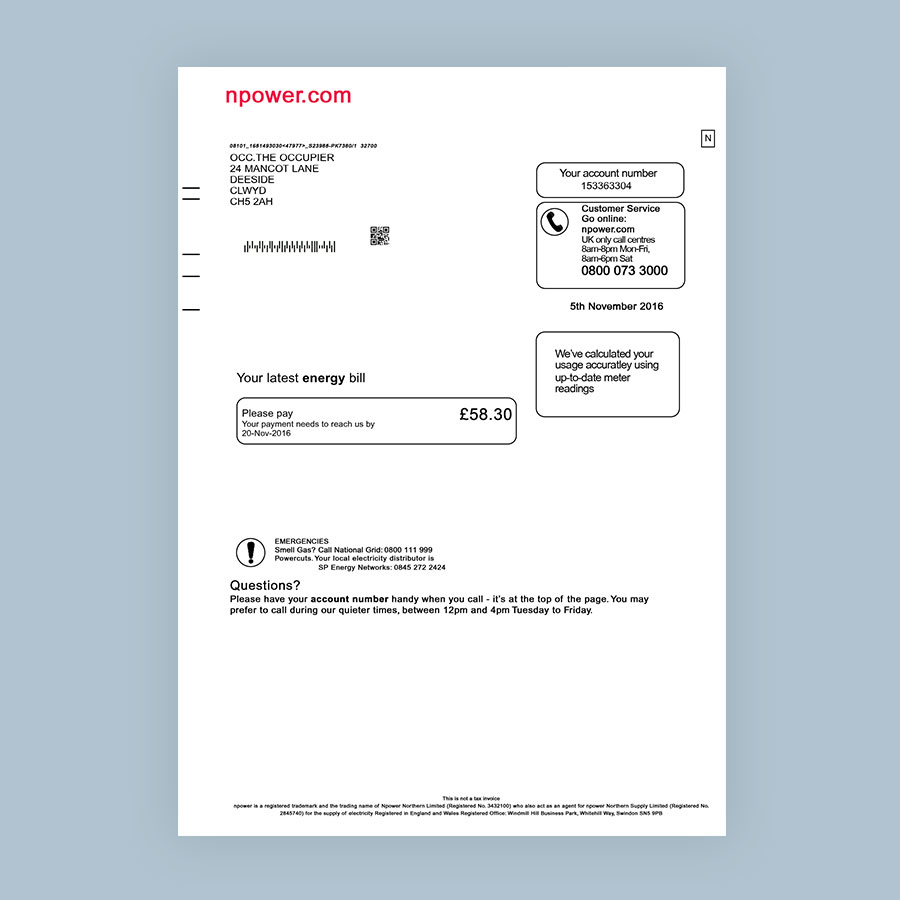 Our team are on hand to process your order as quickly as possible. All orders are guaranteed within 3-4 business days, but can usually be done a lot quicker. If you need your fake NPower Utility Bill quickly, we have an express service available which will bring that turnaround down to just 24-48 hours.
