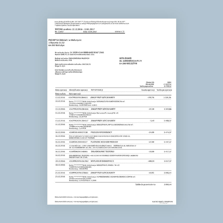 We also offer a fully editable PSD version of this fake Polski Bank Statement. This is for all you PhotoShop wizards out there! With our Photoshop Documents you can make as many edits as you wish, so once you buy it once you can keep this file and have unlimited uses for life.