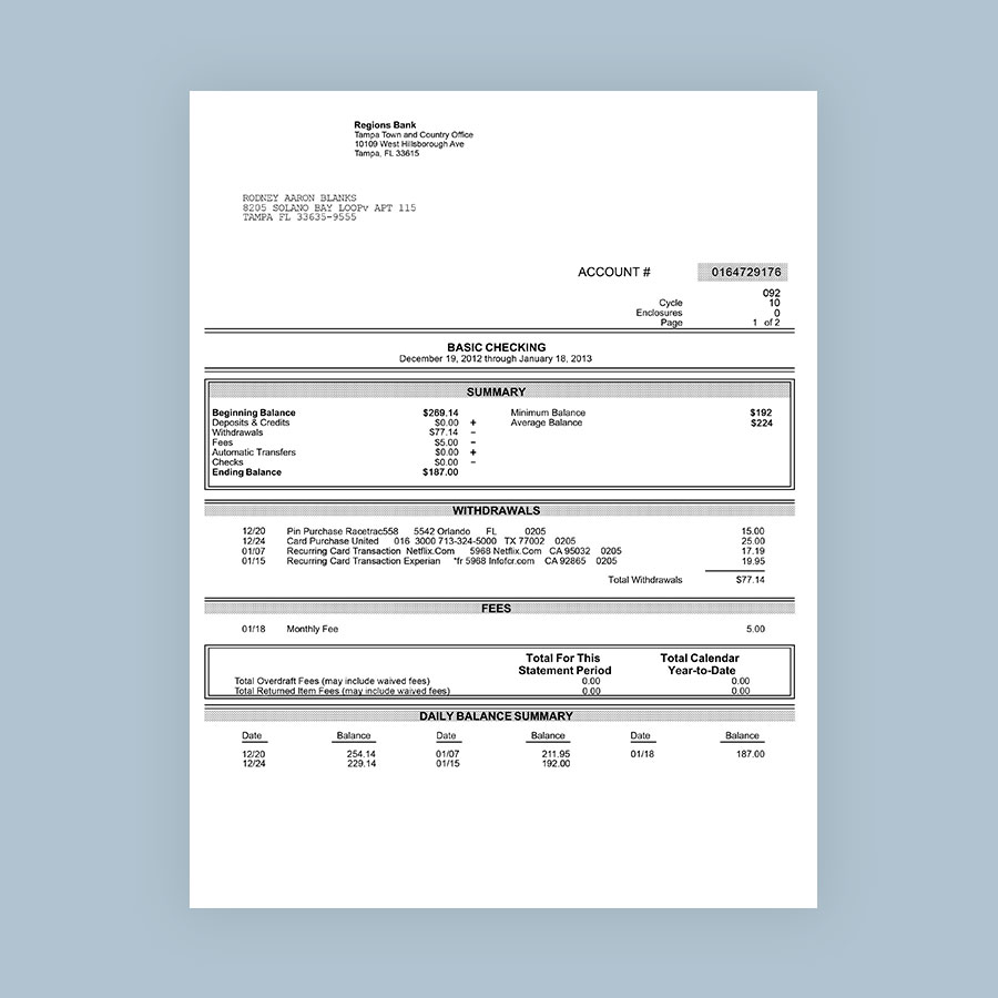 We also offer a fully editable PSD version of this fake Regions Bank Statement. This is for all you PhotoShop wizards out there! With our Photoshop Documents you can make as many edits as you wish, so once you buy it once you can keep this file and have unlimited uses for life.