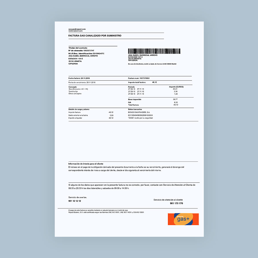 Repsol Utility Bill (Spain)