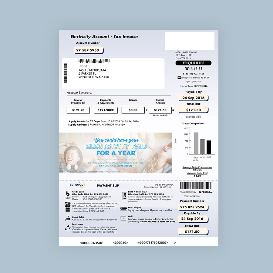 Our team are on hand to process your order as quickly as possible. All orders are guaranteed within 3-4 business days, but can usually be done a lot quicker. If you need your fake Synergy Utility Bill quickly, we have an express service available which will bring that turnaround down to just 24-48 hours.