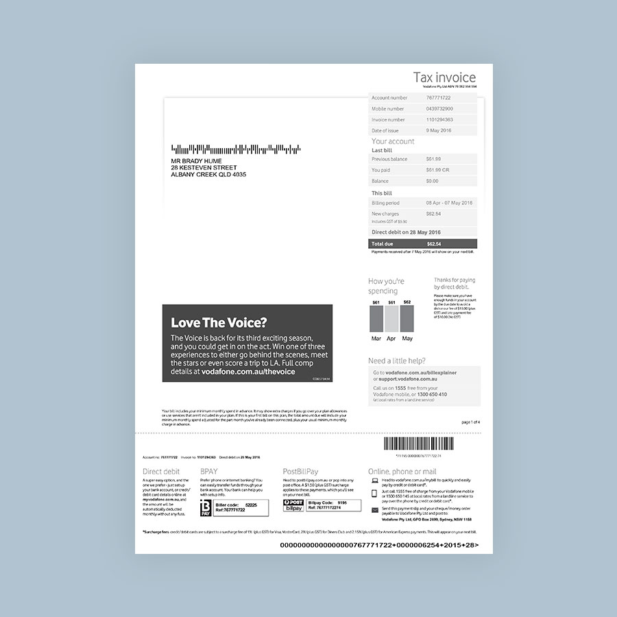 Vodafone Australia Utility Bill