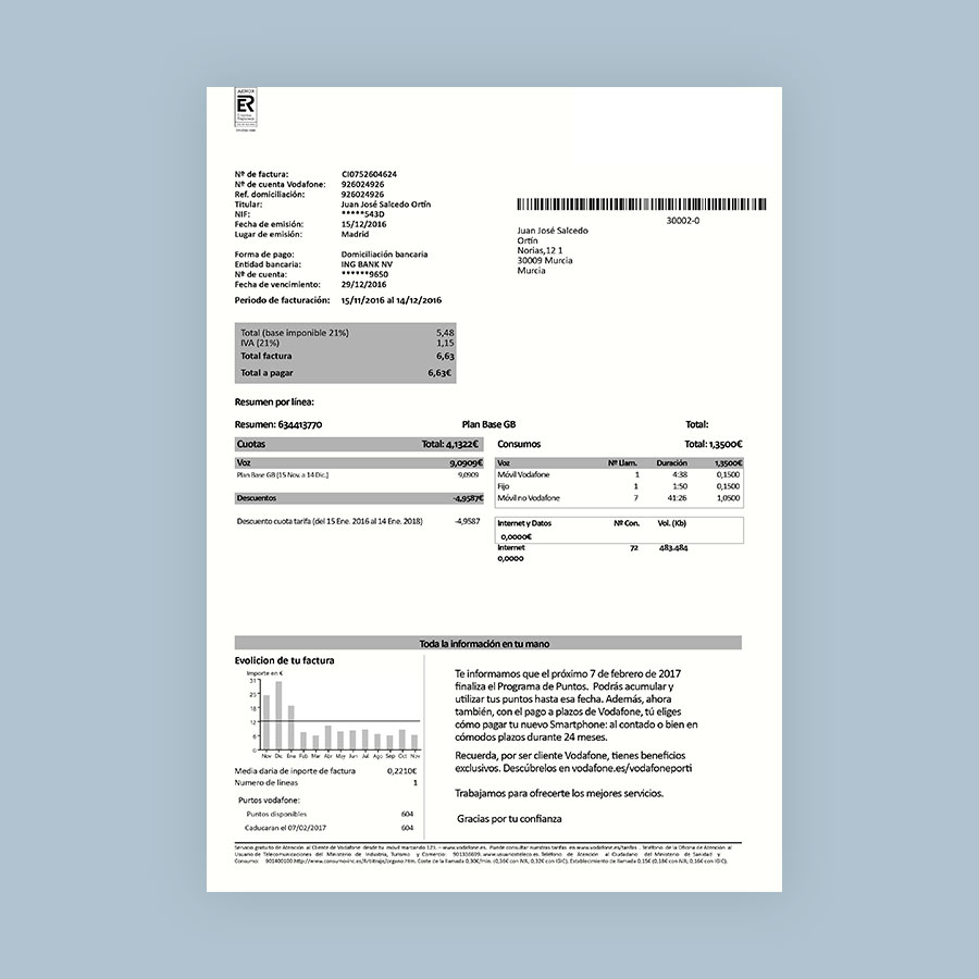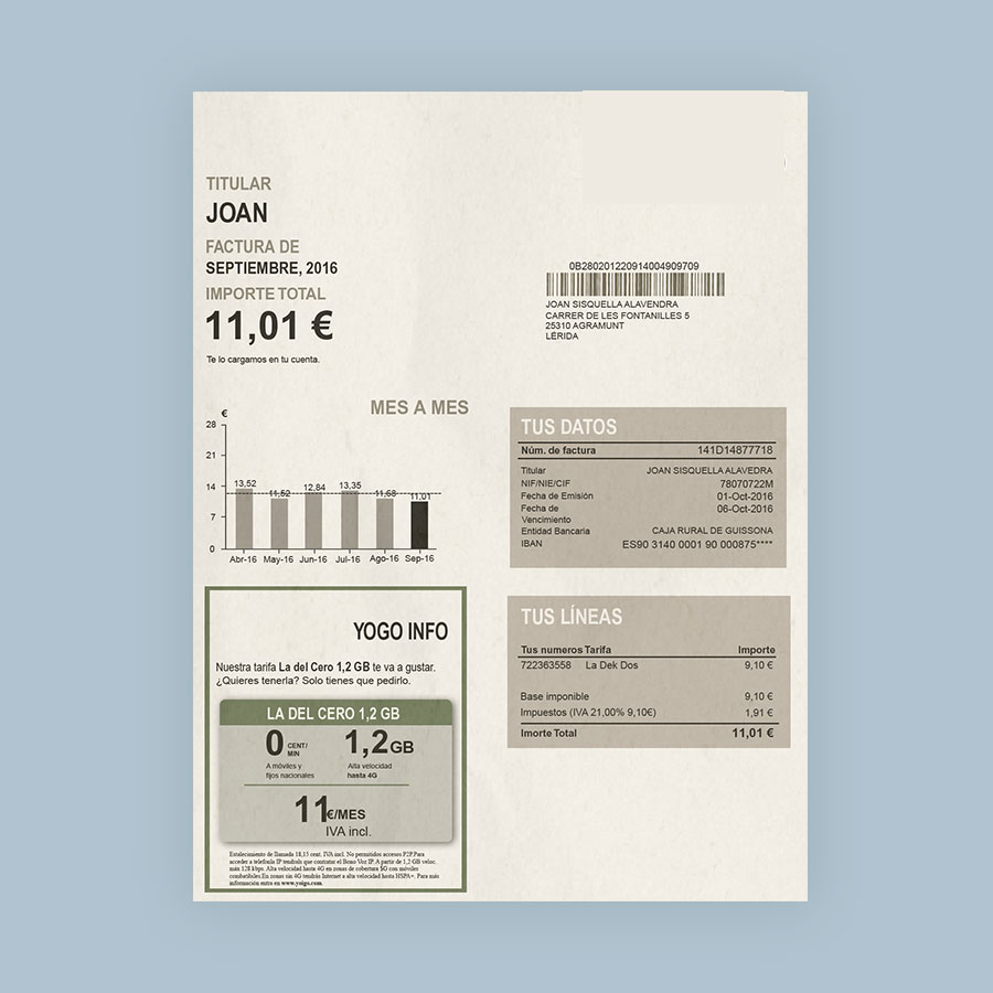 Yoigo (Spain) Utility Bill